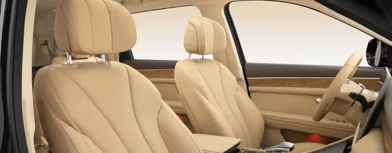 Внутри — 5 или 6 посадочных мест, в зависимости от комплектации салона. Можно выбрать свой цвет интерьера под ваш стиль жизни: черный, темно- или светло-бежевый.